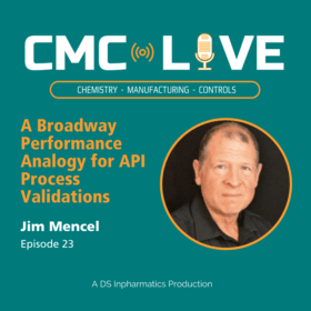 Welcome back to CMC.Live, where we are not here just to entertain you, but also to help educate and share some of our real-life experiences and recent experiences as well. As I said before, surprises are pretty good when it comes to birthday parties and winning the lottery, but not so much when it comes to developing and manufacturing critical active pharmaceutical ingredients, or APIs as we call them. On this podcast, we're going to be speaking with Jim Mencel once again – this time on the significance and science of process validation in the pharma industry as it relates to drug substance mainly.